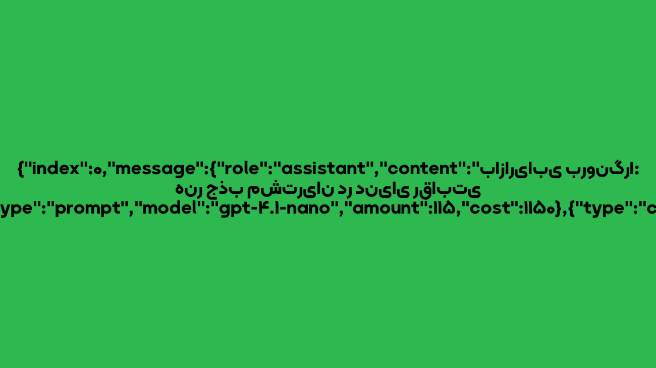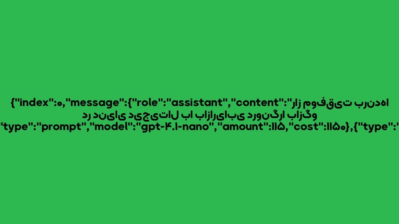 07 سپتامبر مقالات {“index”:0,”message”:{“role”:”assistant”,”content”:”راز موفقیت برندها در دنیای دیجیتال با بازاریابی درونگرا بازگو میشود”,”refusal”:null,”annotations”:[]},”logprobs”:null,”finish_reason”:”stop”,”usage”:[{“type”:”prompt”,”model”:”gpt-4.1-nano”,”amount”:115,”cost”:1150},{“type”:”completion”,”model”:”gpt-4.1-nano”,”amount”:24,”cost”:960}],”via_ai_chat_service”:true} سپتامبر 7, 2025 توسط ادمین 0 نظر {"index":0,"message":{"role":"assistant","content":"```htmlnnnn n راز موفقیت برندها در دنیای د... ادامه مطلب